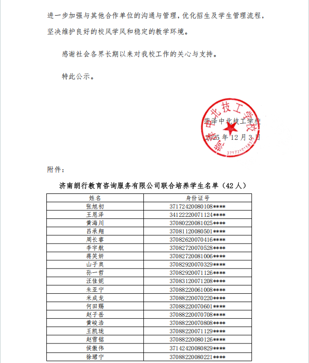 菏泽中北技工学校关于终止与阜宁县仁爱职业技能培训学校有限责任公司合作的公示